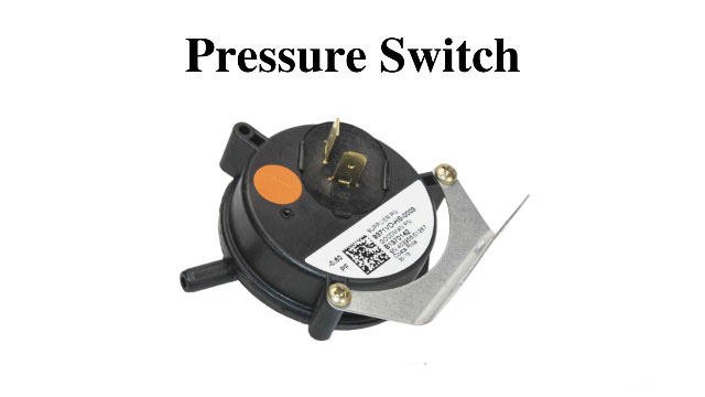 Bagian pressure switch merupakan sakelar yang memastikan draft inducer motor dihidupkan untuk mendorong asap melalui pipa ventilasi. Jika proses vakum tidak terdeteksi oleh pressure switch, gas tidak akan bisa masuk ke tungku.